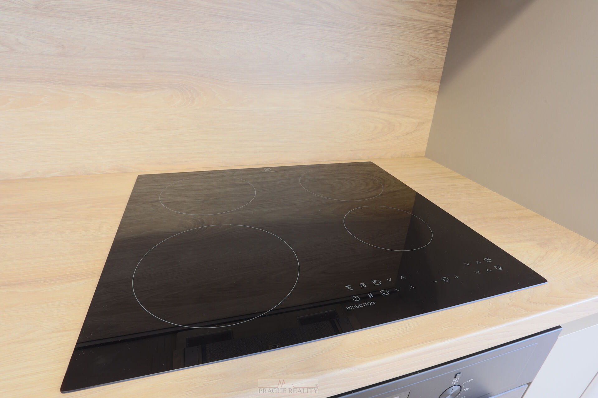 -luxusní kuchyňská linka na míru včetně značkových spotřebičů (indukční varná deska, trouba, vestavěná mikrovlnka, myčka, lednice s mrazničkou, funkční digestoř do komína)