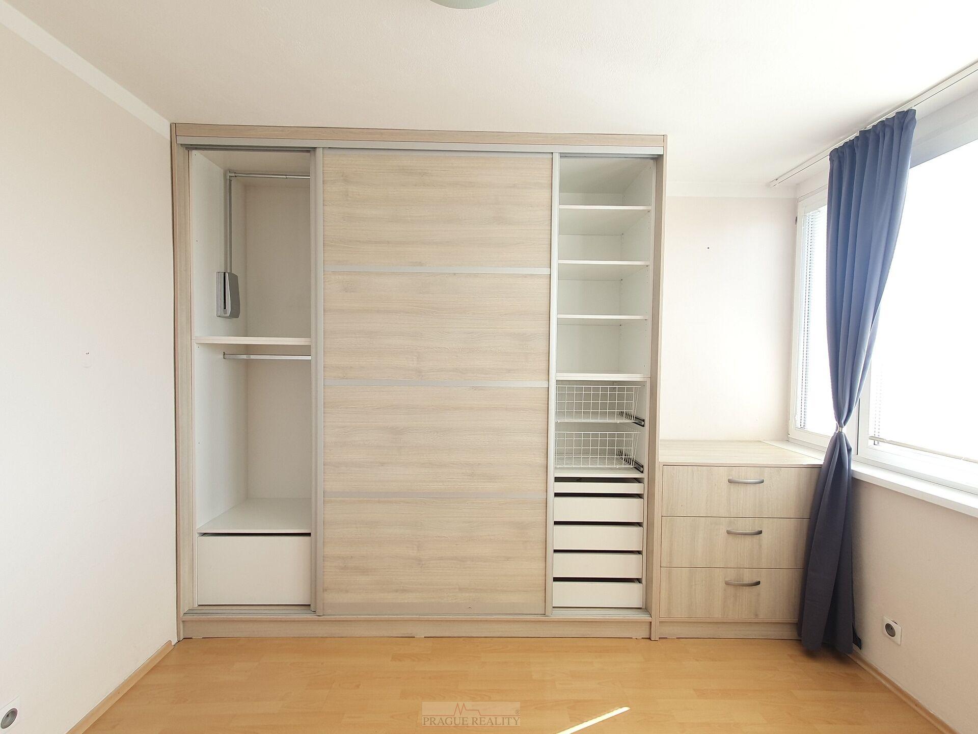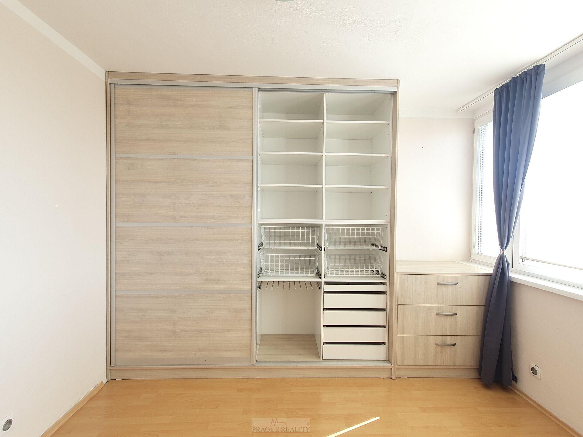 Byt je částečně zařízený. V kuchyni jsou veškeré spotřebiče (lednička, myčka, elektrický sporák s troubou, mikrovlnka), v koupelně je pračka, v předsíni úložná skříň, v ložnici na míru vestavěná šatní skříň s komodou. V ložnici i v obývacím pokoji je klimatizace. Topení a ohřev vody je centrální dálkové, tudíž není nutné se o nic starat.