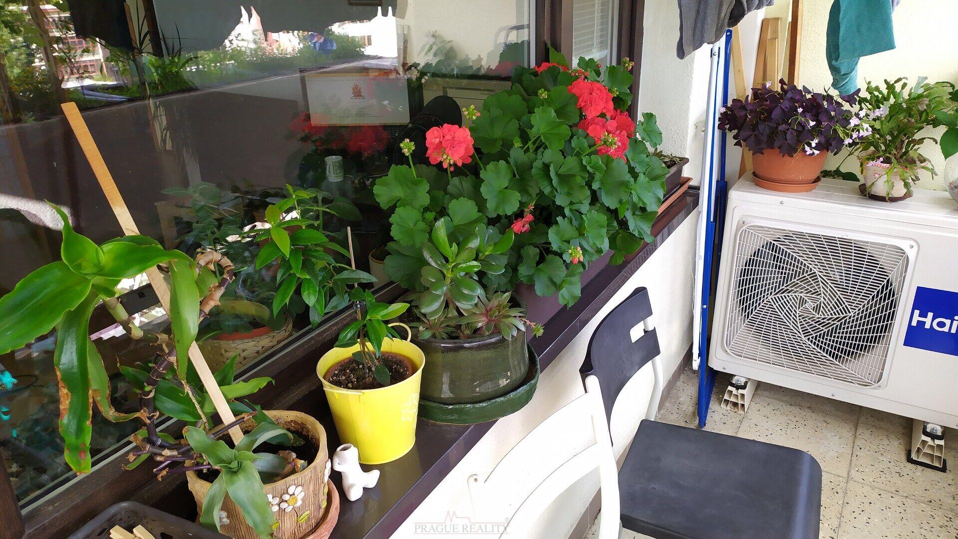 Byt je světlý, slunný, s klimatizací. Má předsíň, ze které jsou samostatné vstupy do všech místností, obývací pokoj s velkou lodžií, kde je umístěno mnoho vyvýšených truhlíků s možností pěstování kytiček, bylinek či i zeleniny, dále ložnici, samostatnou kuchyni, koupelnu s vanou a oddělené WC.