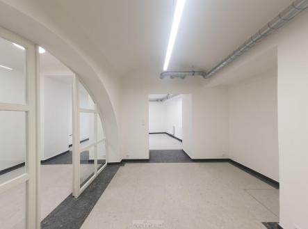 -zadní prostory mají výměru 59m2 a tvoří ho tři částečně oddělené části včetně velmi zajímavé místnosti s revitalizovanou zasklenou a atraktivně osvětlenou studnou (tyto prostory mají vzduchotechniku a rekuperaci)