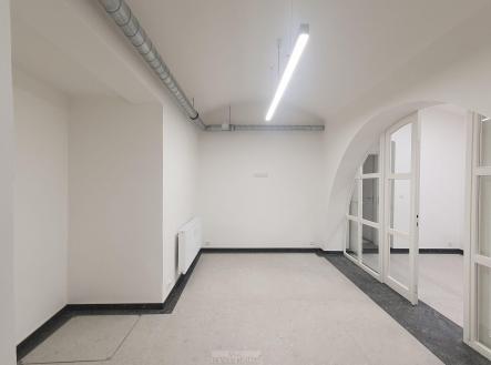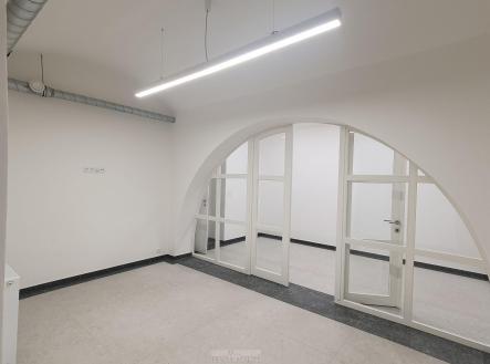 -hlavní kancelář má výměru 88m2 s okny do ulice Žerotínova a nádherné původní klenby (možno rozdělit na dvě samostatné části)
